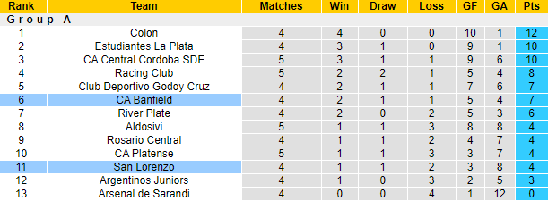 Phong độ và thống kê đối đầu Banfield vs San Lorenzo