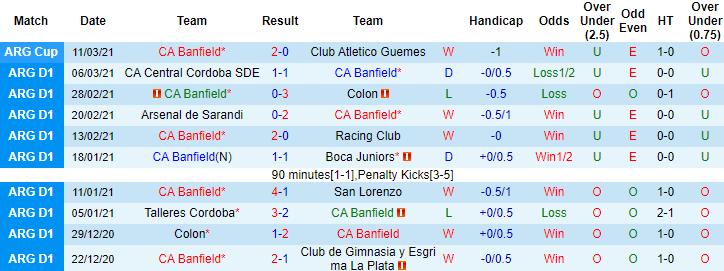 + Thống kê 10 trận gần nhất của Banfield