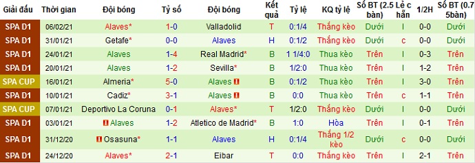 Sau 4 trận thua liên tiếp bao gồm cả trận thua tại cúp nhà vua, mới đây Alavés cũng có được 1 trận hòa và 1 trận thắng ở 2 trận gần nhất. Thành tích sân khách của đội bóng cũng không quá tệ với 1 trận thắng, 2 trận hòa và 2 trận thua ở 5 lần du đấu gần nhất.