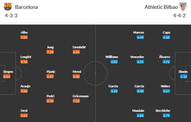 Đội hình dự kiến Barcelona vs Bilbao