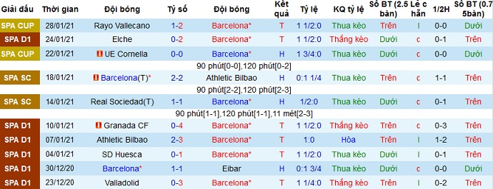 + Thống kê 10 trận gần nhất của Barcelona