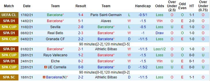 + Thống kê 10 trận gần nhất của Barcelona