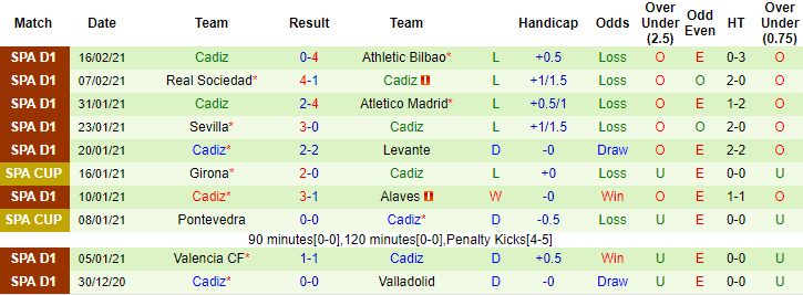 + Thống kê 10 trận gần nhất của Cadiz