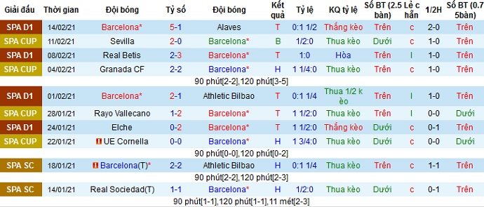 + Thống kê 10 trận gần nhất của Barcelona