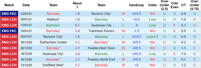 - Thống kê 10 trận gần nhất của Barnsley