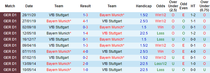 Stuttgart cũng như nhiều đội bóng khác tại Bundesliga luôn tỏ ra lép vế khi đối đầu Bayern Munich. Trong vòng 41 lần chạm trán Hùm xám xứ Bavaria trước đây, Stuttgart chỉ thắng được 6 trận, còn lại là 31 thất bại và 4 trận hòa. Dẫu vậy, ở lần tái đấu sắp tới, Stuttgart được tin tưởng sẽ tạo ra nhiều khó khăn cho đội chủ sân Allianz-Arena.
