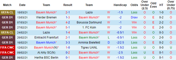 + Thống kê 10 trận gần nhất của Bayern Munich