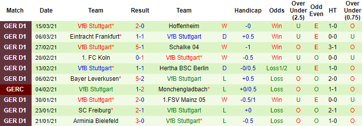 + Thống kê 10 trận gần nhất của Stuttgart