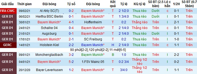 + Thống kê 10 trận gần nhất của Bayern Munich