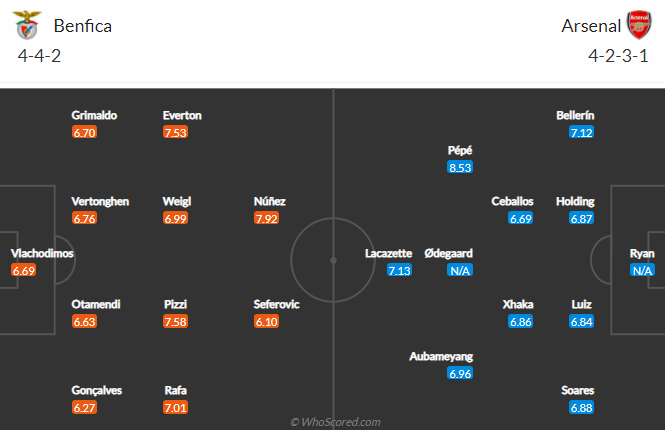 Phong độ và thống kê đối đầu Benfica vs Arsenal