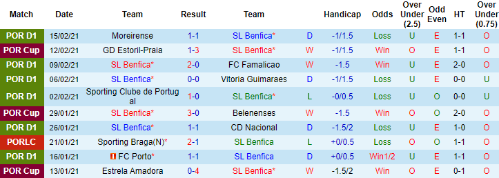 Lần tái đấu sắp tới thuộc khuôn khổ lượt đi vòng 1/16 Europa League 2020/21, Benfica với lợi thế sân nhà hứa hẹn giành kết quả thuận lợi. 10 trận tiếp khách gần đây tính trên mọi đấu trường, Benfica bất bại với 7 chiến thắng và 3 trận hòa. Xa hơn, 20 trận sân nhà trước đó họ thắng 15, hòa 4 và chỉ để thua 1 trận.