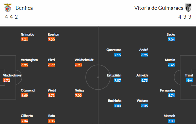 Đội hình dự kiến Benfica vs Vitoria Guimaraes
