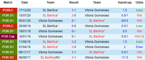 Nếu như Benfica chỉ thắng được 1/4 trận gần nhất thì Vitoria Guimaraes đang có phong độ ấn tượng với mạch 4 trận bất bại liên tiếp, trong đó họ toàn thắng 3 trận gần đây. Ngoài ra, lần đối đầu mới nhất ở Cúp Liên đoàn, Vitoria Guimaraes cũng không thua trước Benfica.
