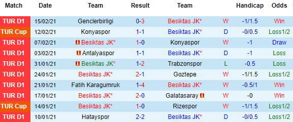 + Thống kê 10 trận gần nhất của Besiktas