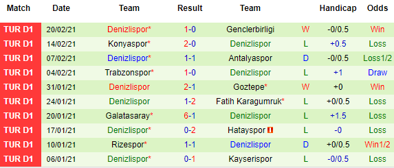 + Thống kê 10 trận gần nhất của Denizlispor