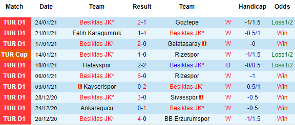 + Thống kê 10 trận gần nhất của Besiktas