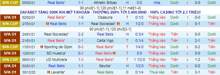 + Thống kê 10 trận gần nhất của Betis