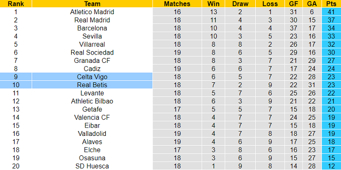 Nhận định Betis vs Celta Vigo, 3h ngày 21/1