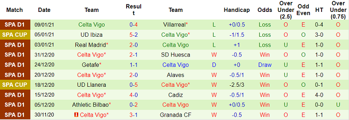 - Thống kê 10 trận gần nhất của Celta Vigo