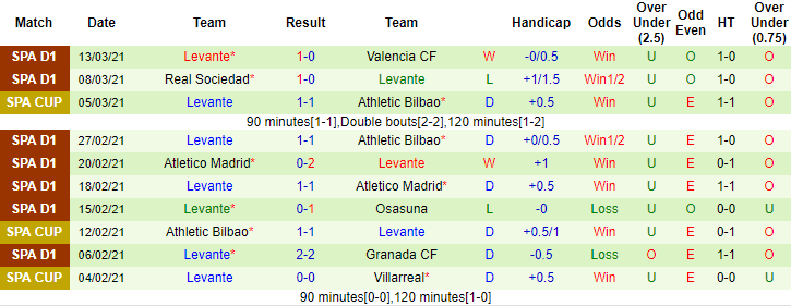 + Thống kê 10 trận gần nhất của Levante