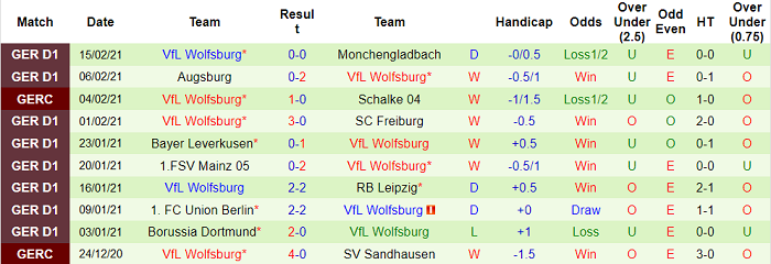 - Thống kê 10 trận gần nhất của Wolfsburg