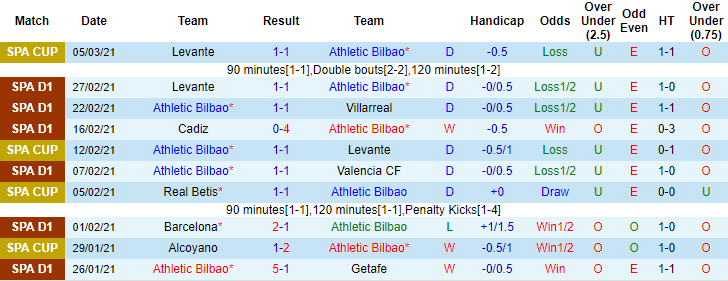 + Thống kê 10 trận gần nhất của Bilbao