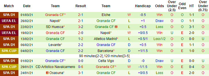 + Thống kê 10 trận gần nhất của Granada