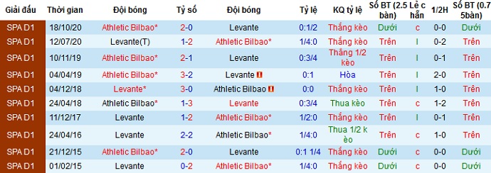 + Lịch sử đối đầu Bilbao vs Levante