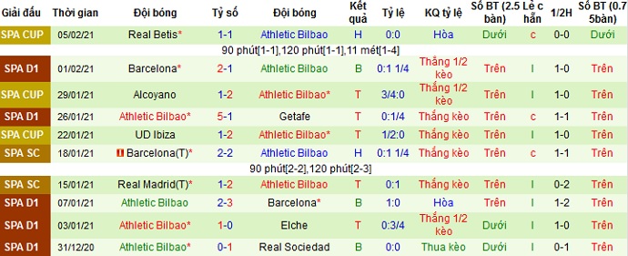 + Soi tỷ lệ kèo châu Á: Với thể thức thi đấu 2 lượt trận tại bán kết nên Athletic Bilbao được đánh giá là đội cửa trên do có lợi thế về sân nhà với kèo chấp khá cao là -0,5. Thế nhưng ngay trên sân nhà ở 5 trận gần nhất Athletic Bilbao chỉ thắng được 2 trận, hòa 1 và để thua 2.