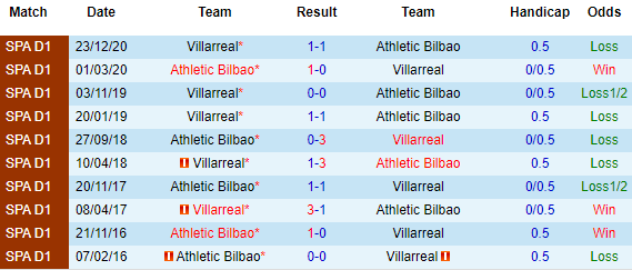 + Lịch sử đối đầu Bilbao vs Villarreal