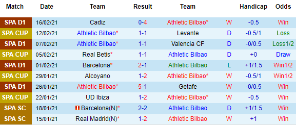 + Thống kê 10 trận gần nhất của Bilbao
