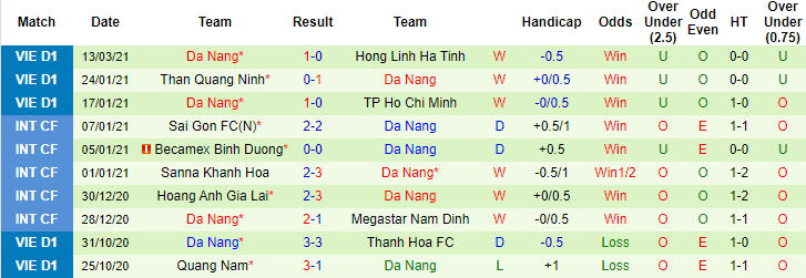 + Thống kê 10 trận gần nhất của Đà Nẵng
