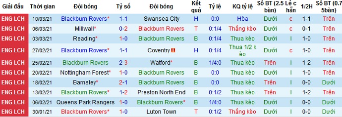 + Thống kê 10 trận gần nhất của Blackburn
