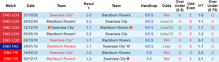 Về màn so tài giữa họ ở lượt đi: ở trận lượt đi diễn ra hồi tháng 10/2020, Swansea đánh bại Blackburn với tỷ số 2-0. Cách biệt có thể lớn hơn nếu các cầu thủ bên phía Thiên nga làm tốt hơn trong khâu kết thúc.