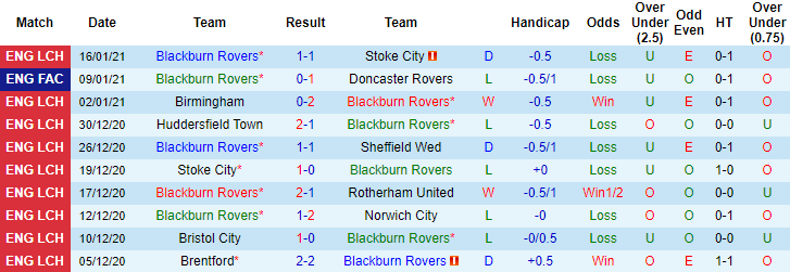 + Thống kê 10 trận gần nhất của Blackburn