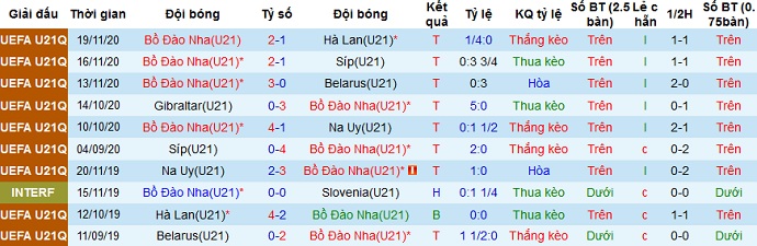 + Thống kê 10 trận gần nhất của Bồ Đào Nha U21