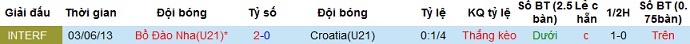 Tỷ lệ kèo Bồ Đào Nha U21 vs Croatia U21