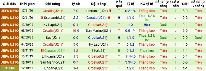 + Thống kê 10 trận gần nhất của Croatia U21
