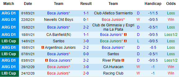 + Thống kê 10 trận gần nhất của Boca Juniors