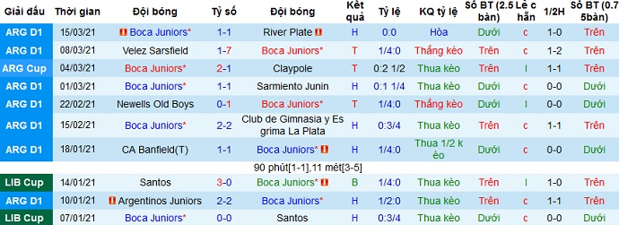 + Thống kê 10 trận gần nhất của Boca Juniors