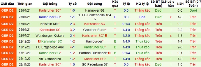 + Thống kê 10 trận gần nhất của Karlsruher