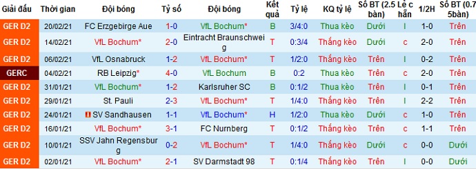 Có điều phong độ gần đây của Bochum đang rất thất thường và có phần sa sút. Ở 5 trận đấu gần nhất đội bóng chỉ có được 2 trận thắng, để thua 3 trận bao gồm cả trận thua trước RB Leipzig tại cúp quốc gia. Trên sân nhà thành tích của Bochum lại khác hẳn khi đang thắng 4, chỉ để thua 1 sau 5 trận gần nhất tại đây