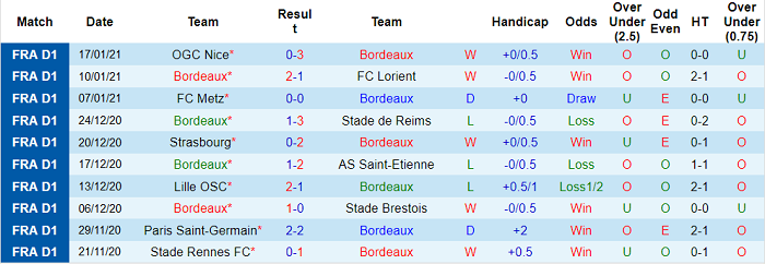 - Thống kê 10 trận gần nhất của Bordeaux