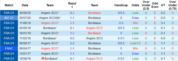 Phong độ và thành tích đối đầu Bordeaux - Angers gần đây
