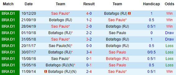 + Lịch sử đối đầu Botafogo vs Sao Paulo