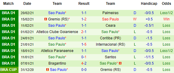 + Thống kê 10 trận gần nhất của Sao Paulo