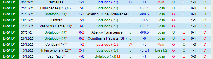 + Thống kê 10 trận gần nhất của Botafogo