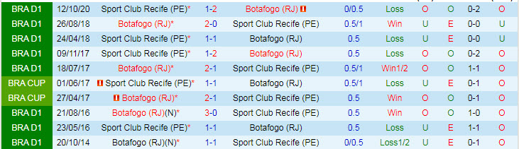 Tỷ lệ kèo Botafogo vs Sport Recife