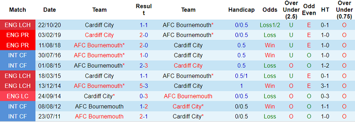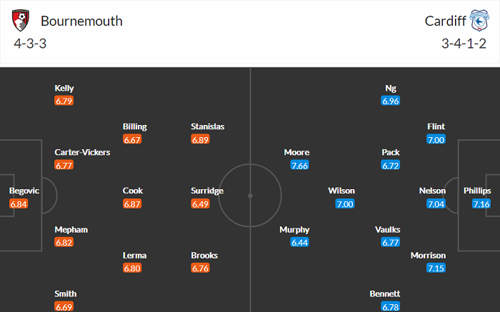 Phong độ và thống kê đối đầu Bournemouth - Cardiff
