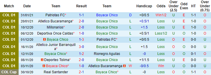 Lý do đến từ phong độ tụt dốc không phanh của Boyaca Chico. Tính đến thời điểm hiện tại họ đã không thắng 8 trận liên tiếp gần đây trong khuôn khổ giải VĐQG Colombia với 7 thất bại và 1 trận hòa. Trên sân nhà, 2 trận vừa qua Boyaca Chico toàn thua cả về tỷ số và kèo châu Á, thủng lưới 5 lần.